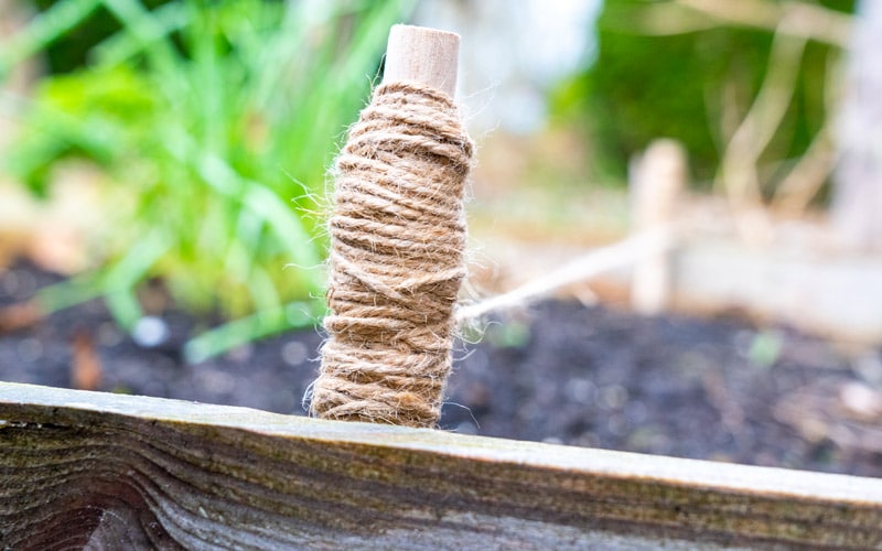 Simply place a planting stick on both sides of your garden bed and stretch the line in between. Transplant or sow directly underneath the line for straight rows. Seedlings growing in straight lines are also easier to recognize during weeding and maintenance.
