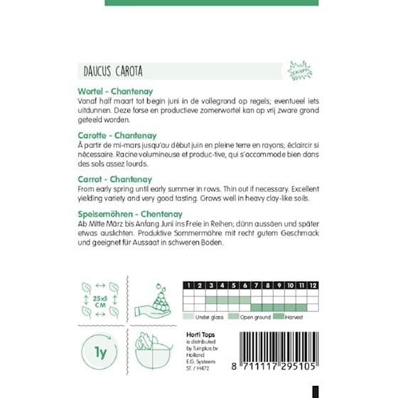 Chantenay carrots are perfect for all soil types, particularly heavier soils like clay. Sow Chantenay from mid-March to early June directly in the open ground in rows. This robust and productive summer carrot is ideal for growing on fairly heavy soil.