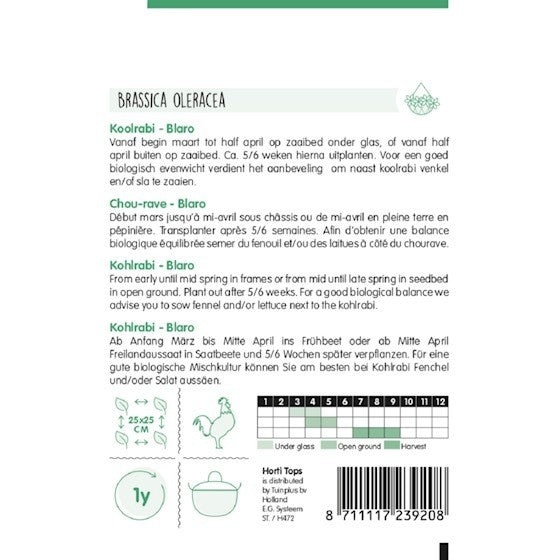 Kohlrabi - Blaro is a stunning purple variety, perfect for growing in colder climates like the Netherlands and Germany. Known for being rich in vitamins and low in calories, kohlrabi adds both nutrition and color to your garden.