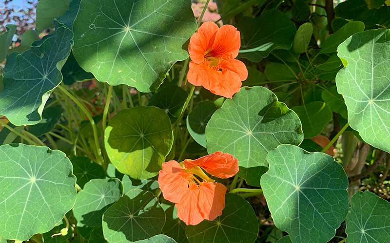 Experience the charm of Tropaeolum Salmon Baby, also known as Nasturtium. This non-vining variety boasts stunning dark foliage and salmon rose flowers, perfect for pots, balconies, or as a sacrificial plant in your vegetable patch.