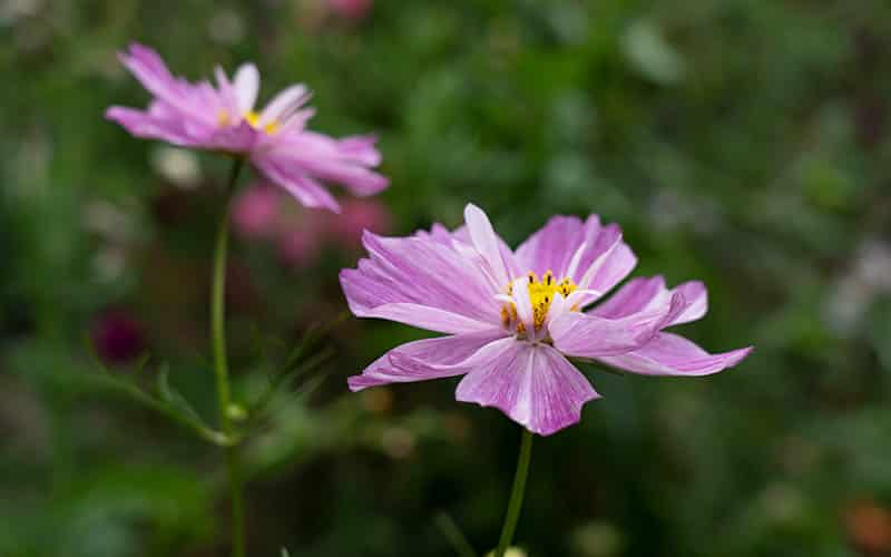 Wir präsentieren Cosmos Rosetta, den Inbegriff von luftigem Charme und Eleganz. Diese zartrosa Blüten mit leuchtend gelber Mitte blühen auf langen, schlanken Stielen und verleihen Ihrem Garten eine anmutige Note.