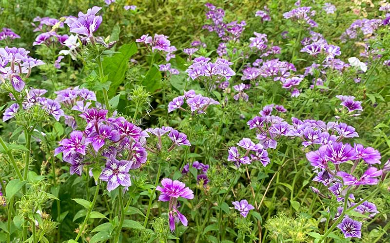 Phlox Drummondii Grandiflora Sugar Stars hat atemberaubende violettfarbene Blüten mit einem weißen Herzen. Diese einjährigen Phlox keimen leicht und erfordern nur minimale Pflege, obwohl die Hasen in der Nachbarschaft sie auch lieben. Glücklicherweise wachsen die Pflanzen schnell und vertragen einen Rückschnitt.
