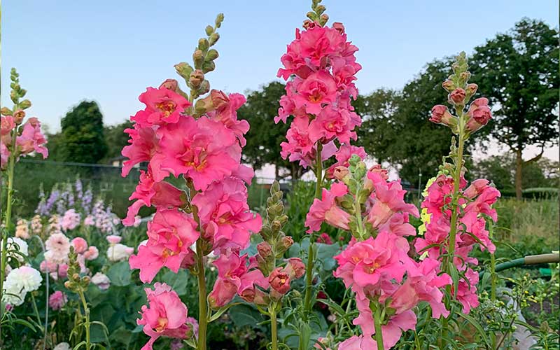 Wenn Sie Schmetterlingslöwenmäulchen noch nicht probiert haben, ist jetzt der perfekte Zeitpunkt dafür! Die Sorte Madame Butterfly Rose wird schnell zu Ihrer Lieblingsart von Löwenmäulchen. Im Gegensatz zu herkömmlichen Löwenmäulchen sind diese Blüten offen und haben doppelte Blütenblätter, was ihnen ein einzigartiges und bezauberndes Aussehen verleiht.