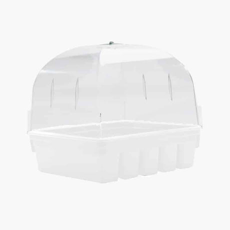 Statten Sie Ihre Charles Dowding-Zellenschalen mit 15 und 30 Zellen mit unserem speziellen Anzuchtkasten aus, der die perfekte Größe hat, um eine ideale Wachstumsumgebung zu schaffen. Dieses Gewächshaus ist so konzipiert, dass es optimale Luftfeuchtigkeit und Temperatur aufrechterhält, was für die frühen Stadien der Keimlingsentwicklung in diesen speziellen Schalen entscheidend ist.