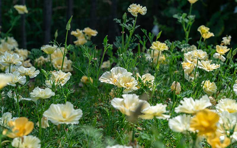 Kalifornischer Mohn ist für seine romantischen, seidenartigen Blüten bekannt, und die Sorte Cream Swirl bildet hier keine Ausnahme. Mit ihren weichen, buttercremegelben, gekräuselten Blütenblättern verleihen diese Blüten jedem Garten einen Hauch von Eleganz. Mit ihren kürzeren Stielen sind Kalifornischer Mohn Cream Swirl perfekt für den vorderen Teil des Beets geeignet und bieten einen bezaubernden und zarten Anblick.