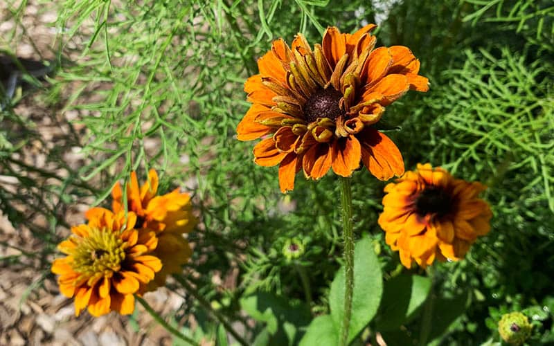 Diese wärmeliebenden Pflanzen benötigen nur wenig Pflege, müssen aber regelmäßig gegossen werden. Um neue Blüten zu fördern, sollten Sie die verblühten Blüten entfernen. Mit ihren leuchtenden und großen Blüten verleiht die Rudbeckia Cherokee Sunset Ihrem Garten eine markante Note.
