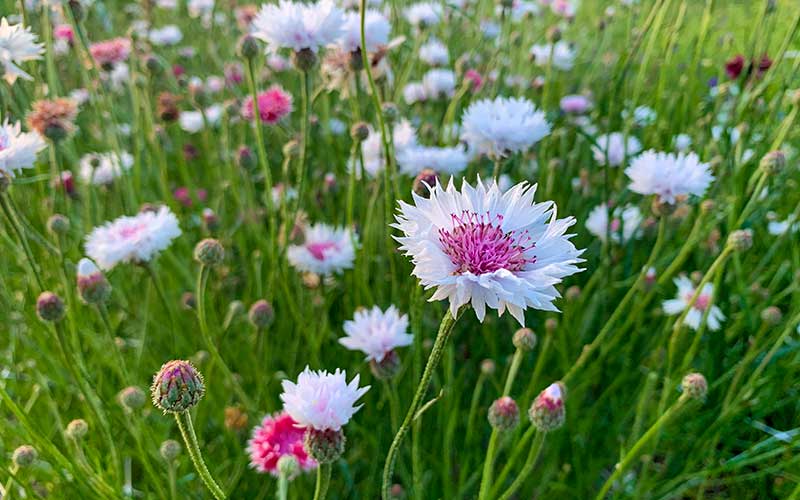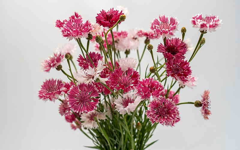 Le bleuet, également connu sous le nom de boutons de célibataire, est un étonnant mélange de fleurs blanches, roses et blanches à roses. Cette variété ajoute une touche romantique à vos bouquets locaux avec ses diverses nuances, donnant l'impression que vous avez cultivé au moins trois variétés différentes. Florissant sur de longues tiges atteignant 90 cm de haut, ces plantes sont parfaites pour ajouter de la hauteur et de la couleur à votre jardin.