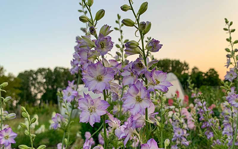 Deze Larkspur-variëteit is ideaal voor het maken van zomerboeketten van eigen bodem en is een must-have voor elke tuinliefhebber. Verbeter uw tuin met de charme en schoonheid van Delphinium Purple Picotee en geniet de hele zomer van levendige bloemen.
