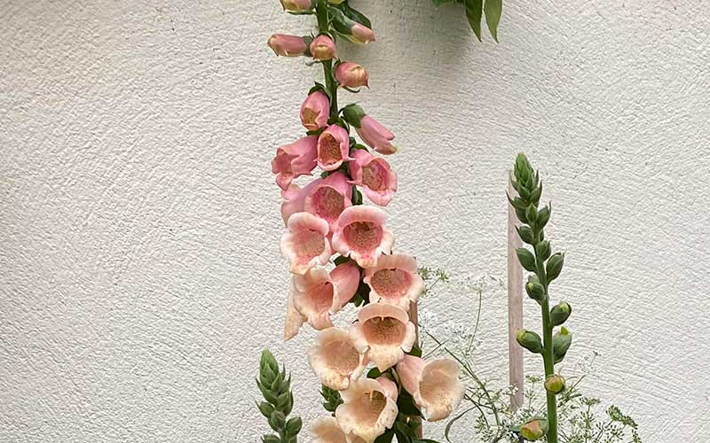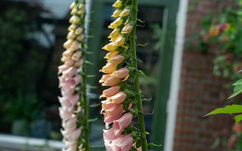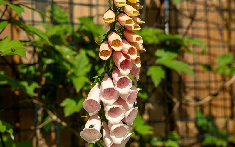 Vingerhoedskruid Dalmatian Peach heeft enkele van de meest verbluffende bloemen die we ooit hebben gezien. Elke ochtend wemelt het van de hoge stengels met verschillende soorten bijen, dankzij de open vorm van de bloemen die gemakkelijke toegang tot stuifmeel mogelijk maken.