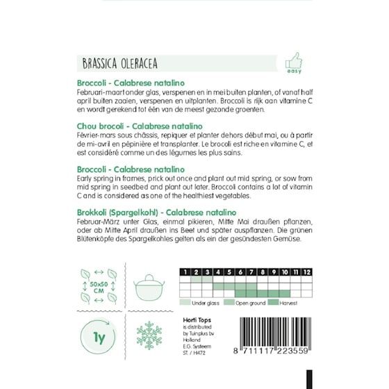 Meet Broccoli - Calabrese Nataliono, a nutrient-packed variety known for its rich vitamin C content and robust health benefits. This versatile vegetable not only offers a bountiful main harvest but also continues to produce smaller side shoots after the main head is cut, ensuring a prolonged harvest season. Perfect for both early and late sowing, Calabrese Nataliono is a must-have for any garden.